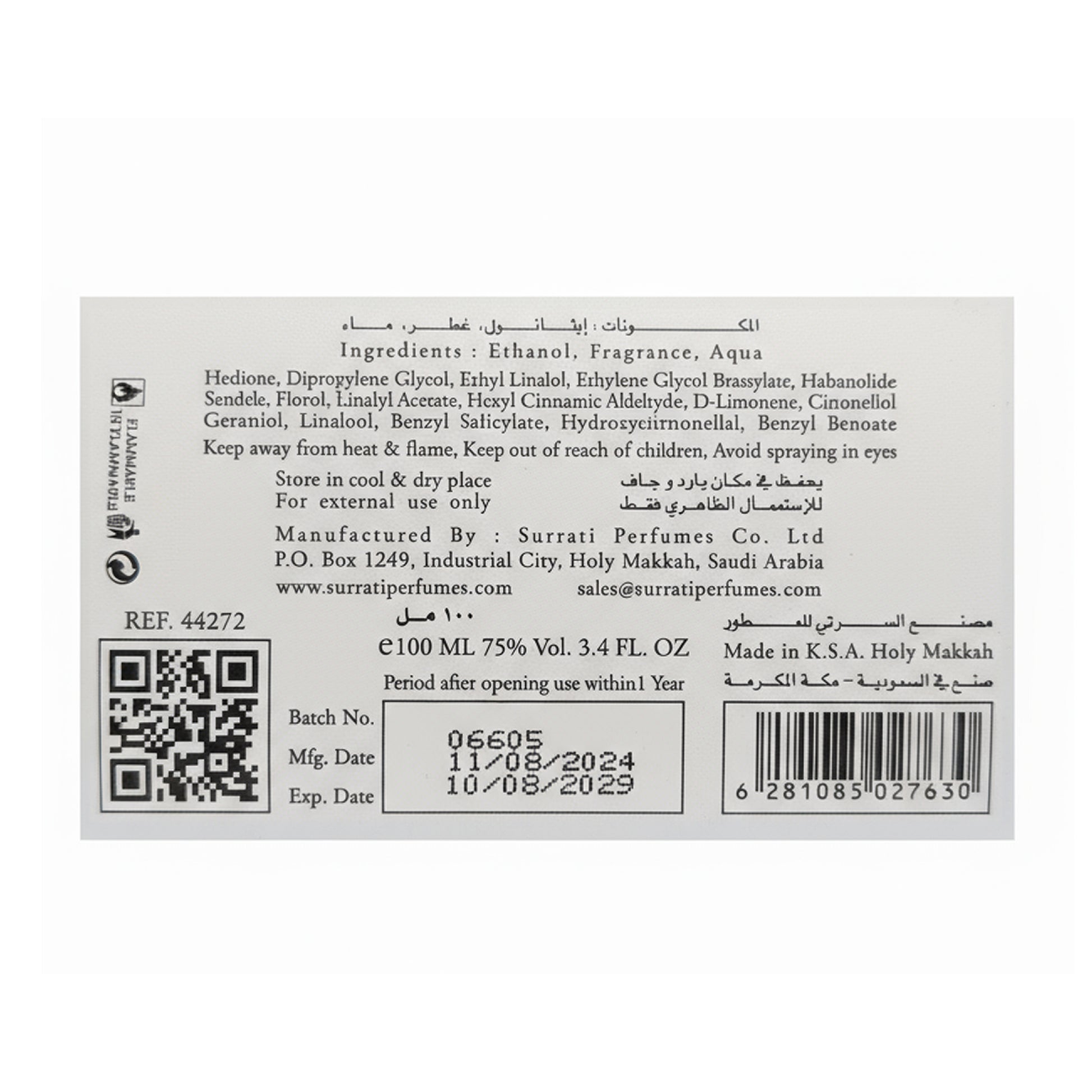 100ml Eau De Parfum (EDP) Concentration: A reliable concentration that provides excellent performance and a rich, long-lasting fragrance experience.